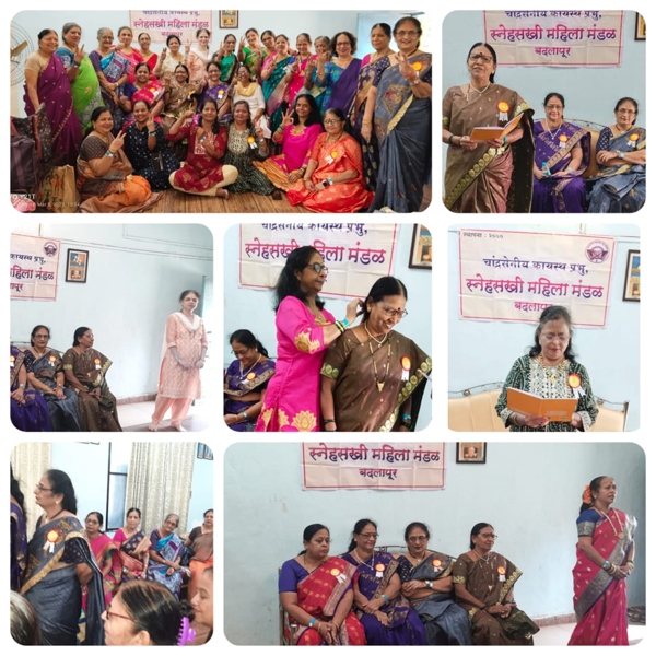 अशाप्रकारे मजा करत सर्व जणी पुन्हा हाॅल मध्ये जमल्या. नंतर काहींनी लावणी सादर केली तर काहींचे पाय कोळीगीतावर थिरकले. अशाप्रकारे दिवसभराचा भरगच्च असा कार्यक्रम झाल्यावर निरोपाची वेळ आली. मंडळाच्या सदस्या सौ.संगीता चित्रे सह सचिव यांनी सर्वांचे मनापासून आभार मानले. नंतर केक व चकलीचे वाटप केले गेले. जाता जाता सर्व भगिनींनी चहा-काॅफीचा आस्वाद घेतला आणि अशाप्रकारे नियोजनबद्ध असा कार्यक्रम संपन्न झाला.